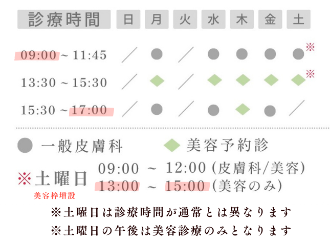 ▶「皮膚科保険診療のご予約(10/31分まで)」よりご予約ください