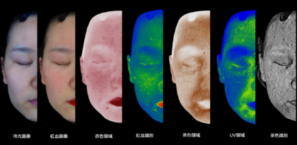 撮影のご負担なくスピーディに撮影でき、自然光、交差偏光、UVなど、11種類の撮影方法が可能です。また、AIによるデータ分析を行うことで肌状態を数値化し、問題点を可視化します。隠れシミ、赤み、ニキビ、ポルフィリン、毛穴の開き、血管、肌質、シワなどの解析が可能となります。